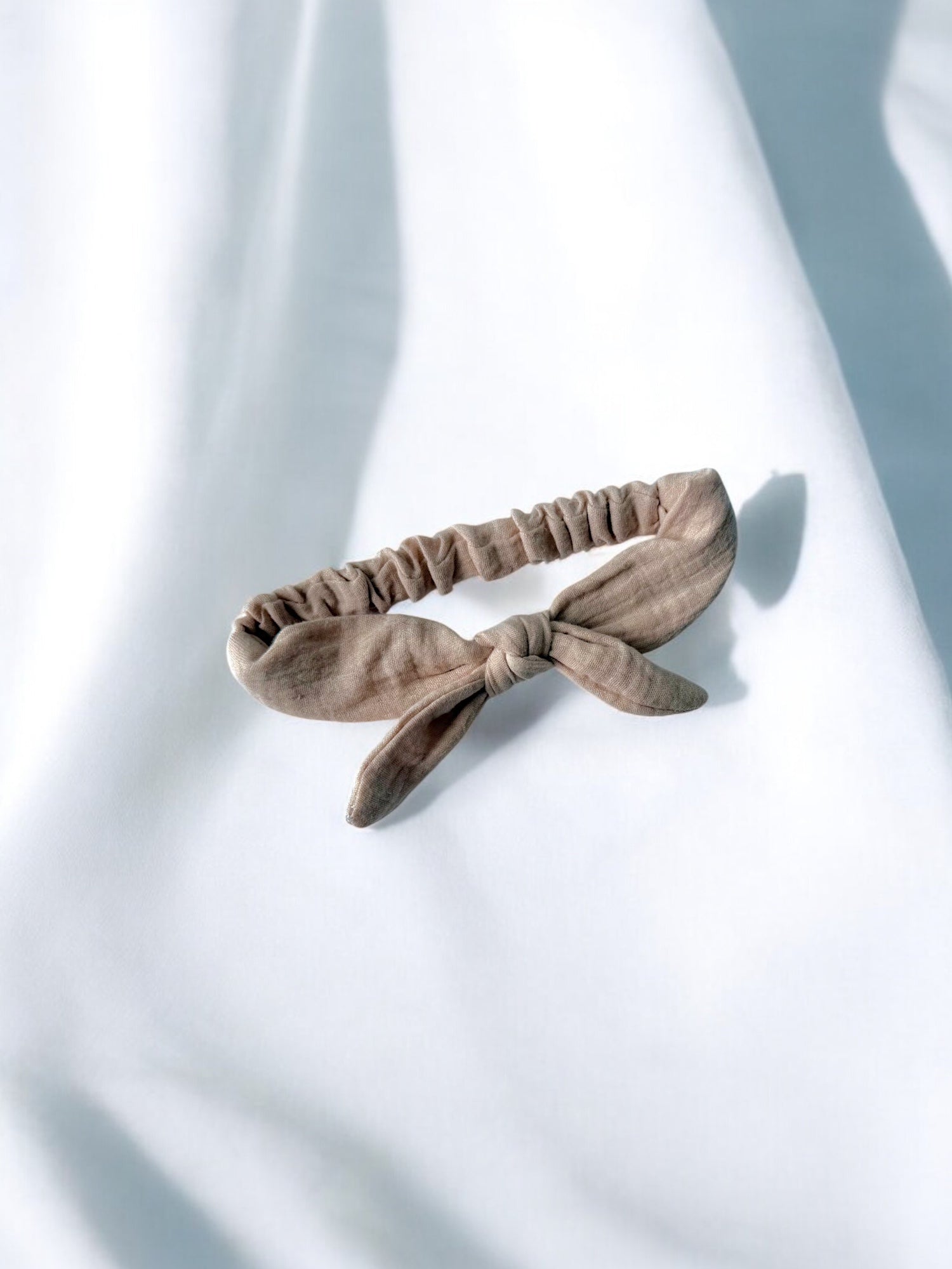 Crafted from 100% cotton, this headband offers a soft and gentle feel for your little one’s delicate skin. The elastic band ensures a comfortable, secure fit that adjusts as your baby grows, making it ideal for daily use. Its light brown hue adds a sweet, neutral touch to any outfit, while keeping baby’s hair in place with effortless charm.