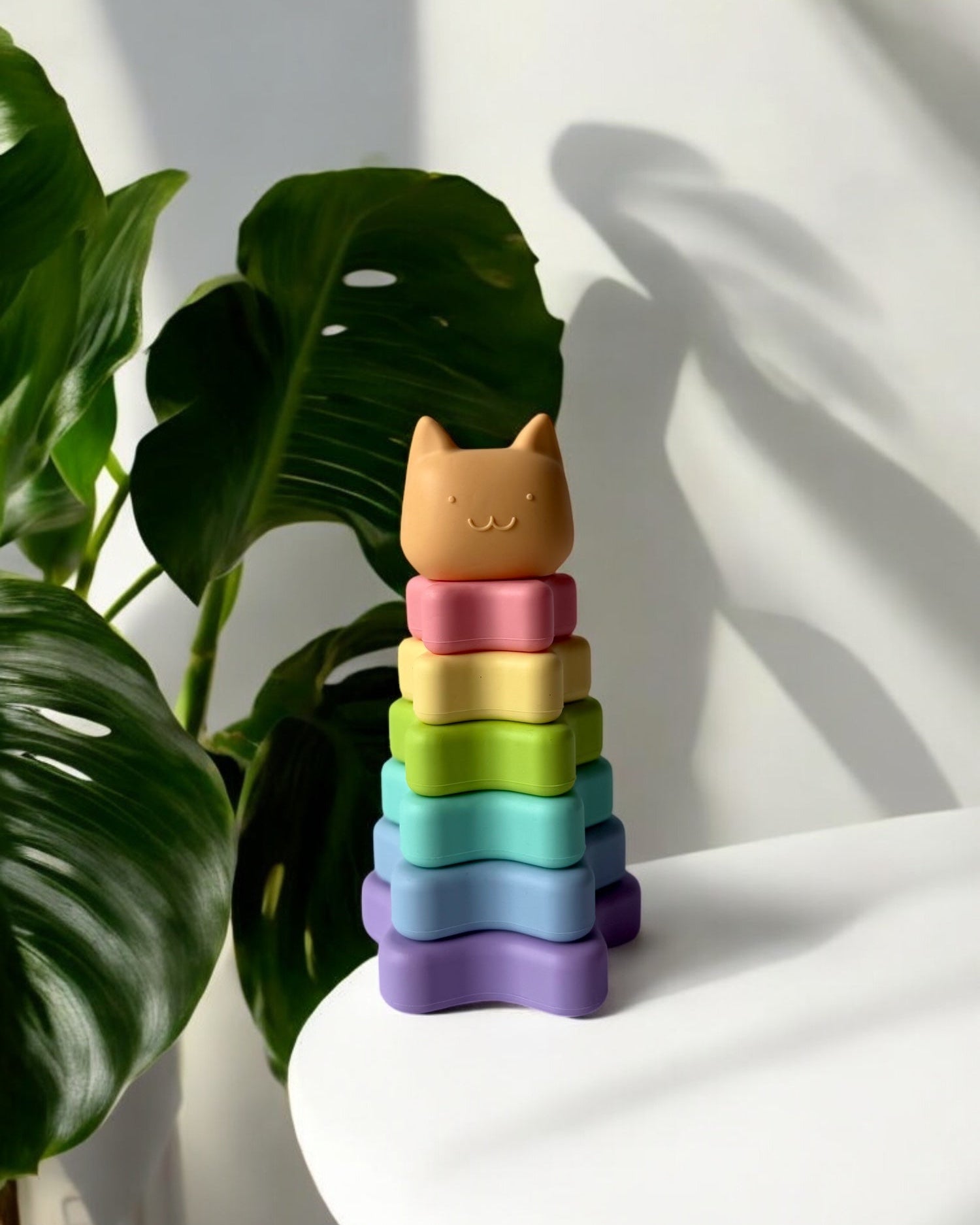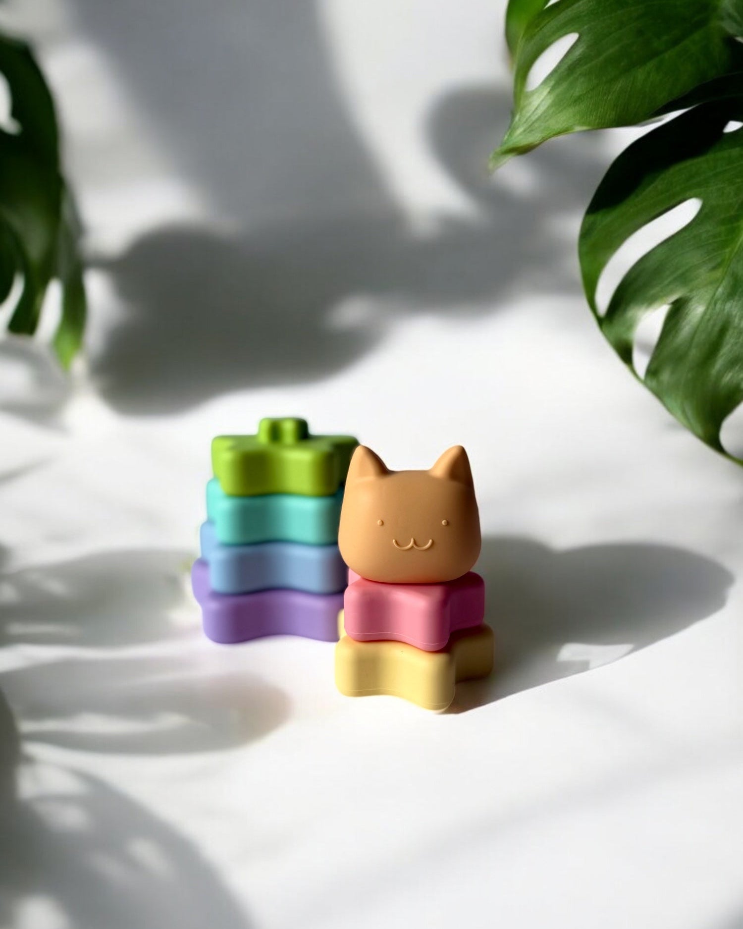 A modern twist on the classic stacker, this pastel-colored silicone star set supports sensory play, motor skill development, and boosts colour recognition. Made from soft, baby-safe, waterproof silicone, it also doubles as a teether and bath toy.